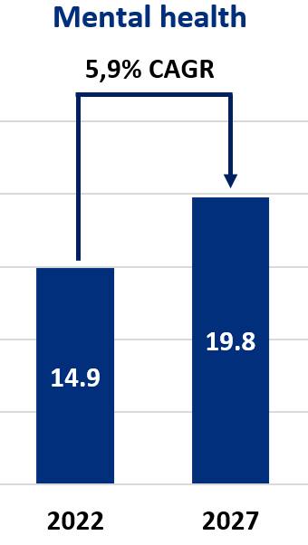 The global market of Mental Health is expected to reach US$ 508.9 Billion by 2028, exhibiting a growth rate (CAGR) of 3.4% during 2023-2028.